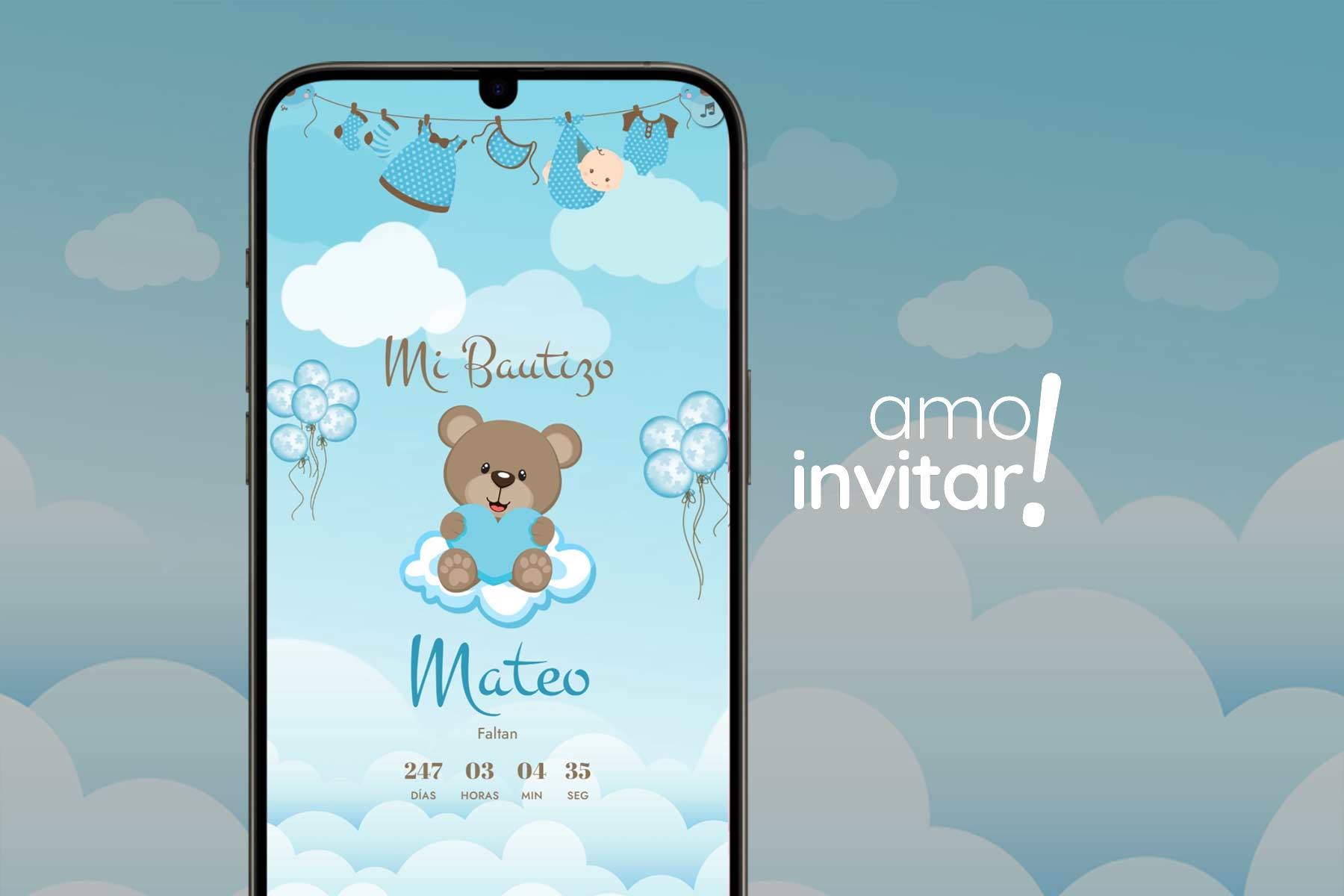 Invitación Web Bautismo - Celeste